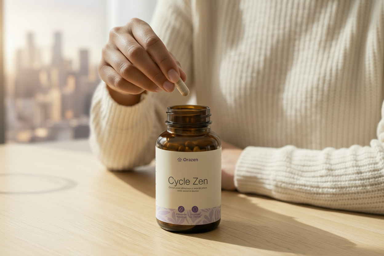 Les gélules Cycle Zen sont formulées à partir d’ingrédients 100 % naturels, soigneusement sélectionnés pour favoriser l’équilibre hormonal et réduire les inconforts liés au syndrome prémenstruel.